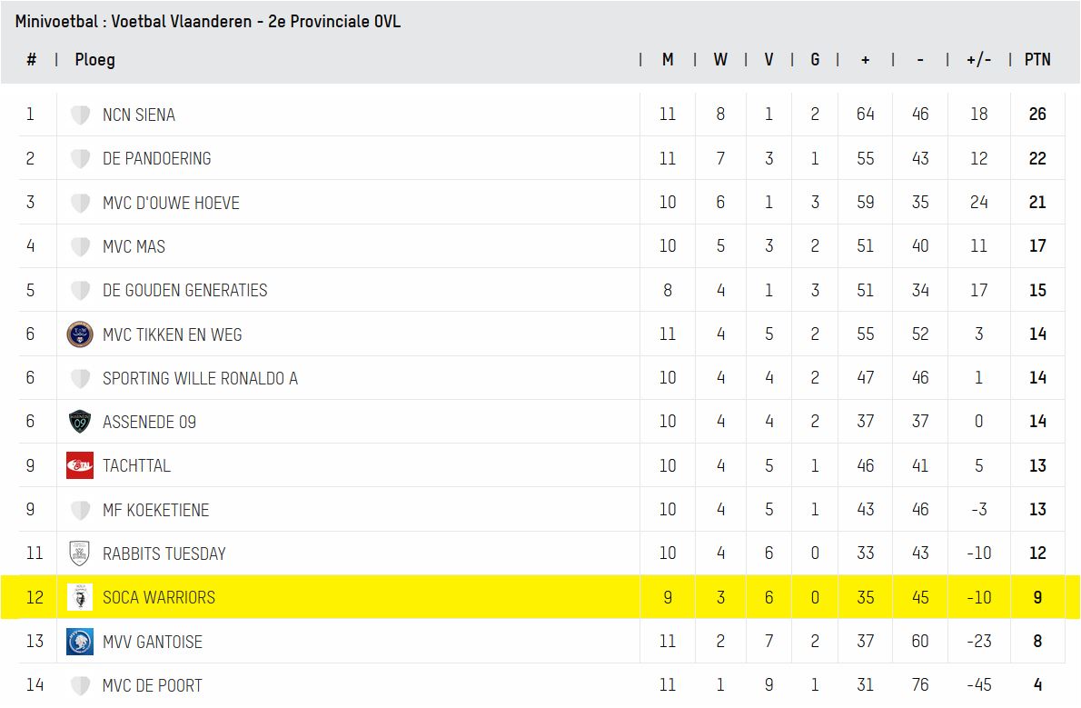 Klassement 20/11/2025
