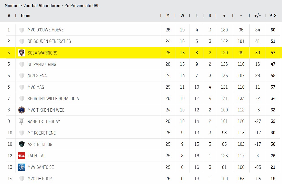 Klassement 19/04/2026